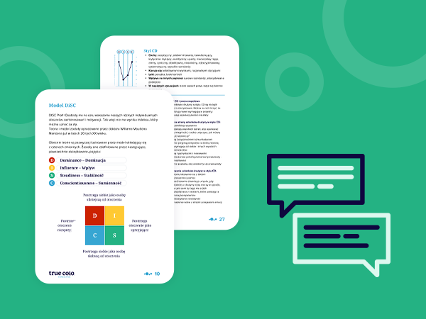 The report includes the examination results indicating the dominant two behavior styles in the DISC model, and it presents indicators of the intensity of individual characteristics. It also highlights the strengths of the person being examined, their behavior style under stress, factors increasing work efficiency, preferred methods of communication, and their impact on others.